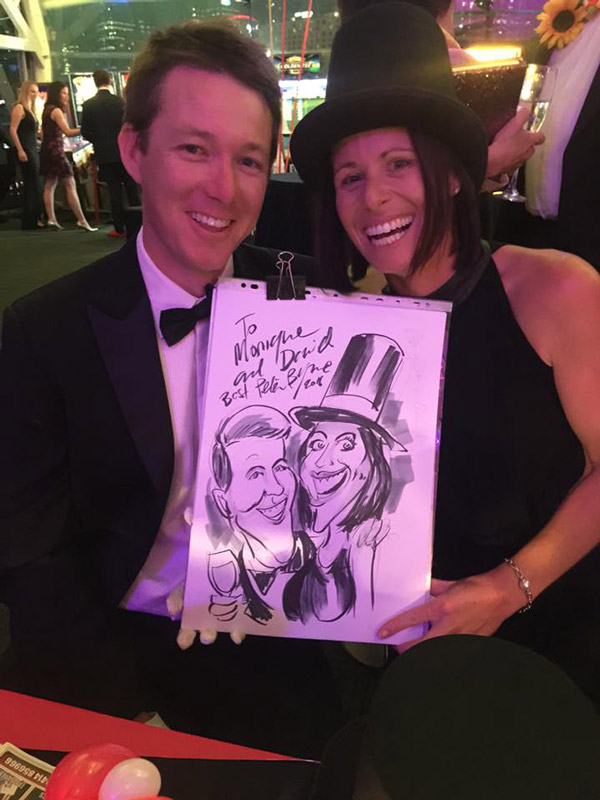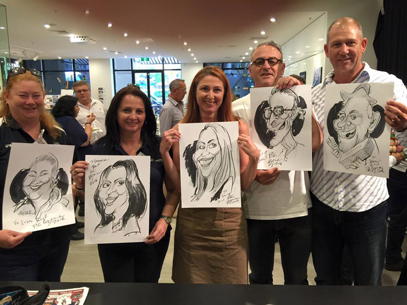 Nuestro fantástico dibujante de caricaturas tiene más de 25 años de experiencia, desde dibujar para periódicos hasta mostrar sus habilidades como caricaturista para empresas en toda Australia. Sorprenda a los invitados de su próxima ocasión especial con nuestro hábil dibujante de caricaturas, que cautivará tanto a jóvenes como a mayores, brindándoles recuerdos únicos de su evento. Nuestro fantástico caricaturista ha creado su propio estilo único que seguramente dejará una impresión duradera en sus invitados, ya que nuestro artista de eventos dibuja una variedad de escenarios relacionados con sus invitados que generarán interesantes temas de conversación.