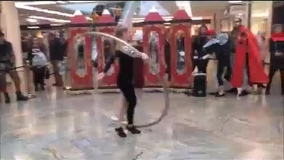 Nuestra acróbata pasó años compitiendo como gimnasta de alto nivel antes de introducir una rueda cyr en su acto.