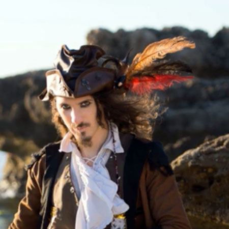 - Entretenimiento ambulante: Realizando malabares de contacto y otros trucos circenses, nuestro pirata puede pasearse por tu lugar de celebración, conocer a los invitados y posar para fotos