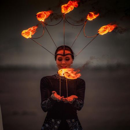 Con sede en Dubai, puedes contratar a nuestra artista de fuego femenina para impresionar a los invitados en eventos locales e internacionales.