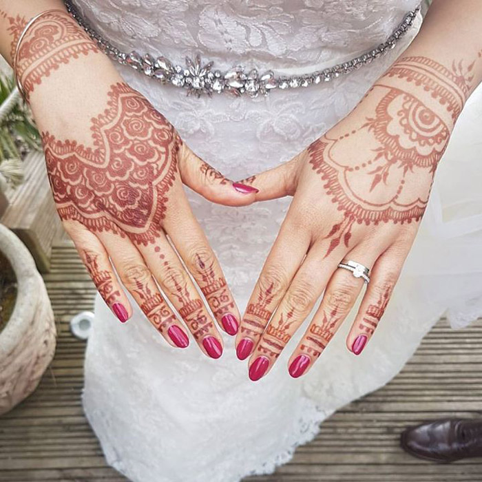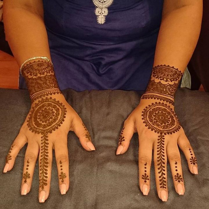 Bharathi Sanghani es una artista profesional con sede en Birmingham que se especializa en arte de henna para manos y cuerpo.