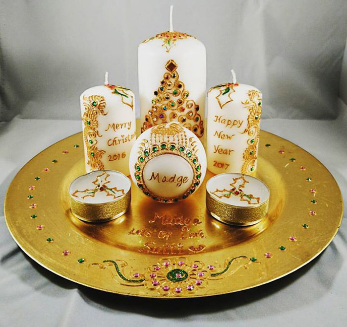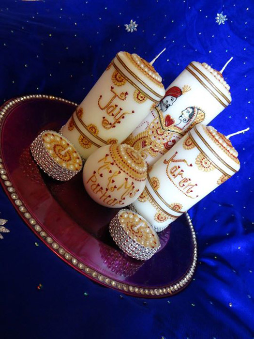 Como un toque único, el artista también se especializa en velas decoradas con arte de henna y diseños personalizados.