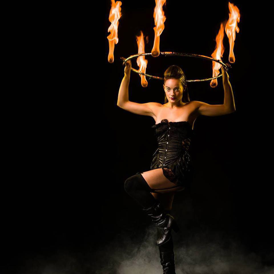Hoy en día, nuestra artista de hula hoop también tiene experiencia en comer fuego, lanzar fuego, antorchas en los pies, poi de fuego, hula hoop de fuego, artes aéreas y ahora está estrenando un nuevo acto de equilibrio circense. Michelle está disponible para actuar desde unos minutos hasta actuaciones en el escenario principal en eventos corporativos, festivales, exposiciones, fiestas, clubes, desfiles y más. Cada espectáculo puede adaptarse a los requisitos individuales del evento, combinando una fusión de sus habilidades en artes circenses para asegurar que cada espectáculo sea único y emocionante.
