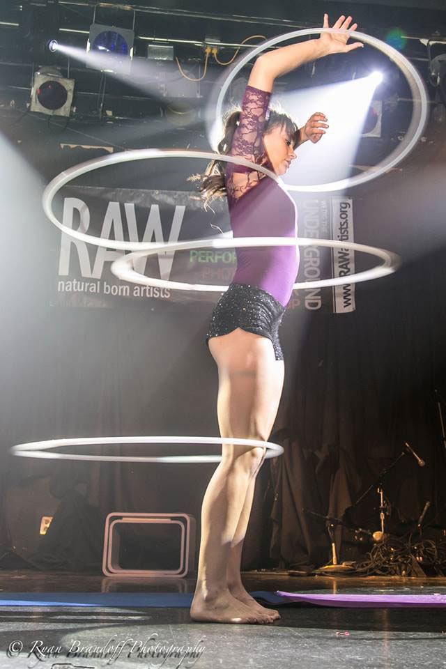 La artista de circo internacional Michelle es una extraordinaria maestra del hula hoop, perfeccionando una danza acrobática única con 1 - 8 aros al mismo tiempo. El aro trajo consigo el descubrimiento de otros actos de circo y artes de fuego, lo que permitió a Michelle practicar más y explorar otras artes.