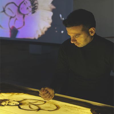 Nuestro sand artist es el número perfecto para crear un espectáculo junto a músicos y cantantes y así potenciar la calidad de tu evento