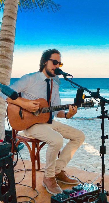 Intérprete versátil con una configuración minimalista que le permite tocar en lugares inusuales.