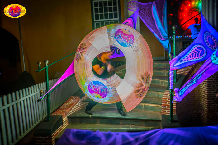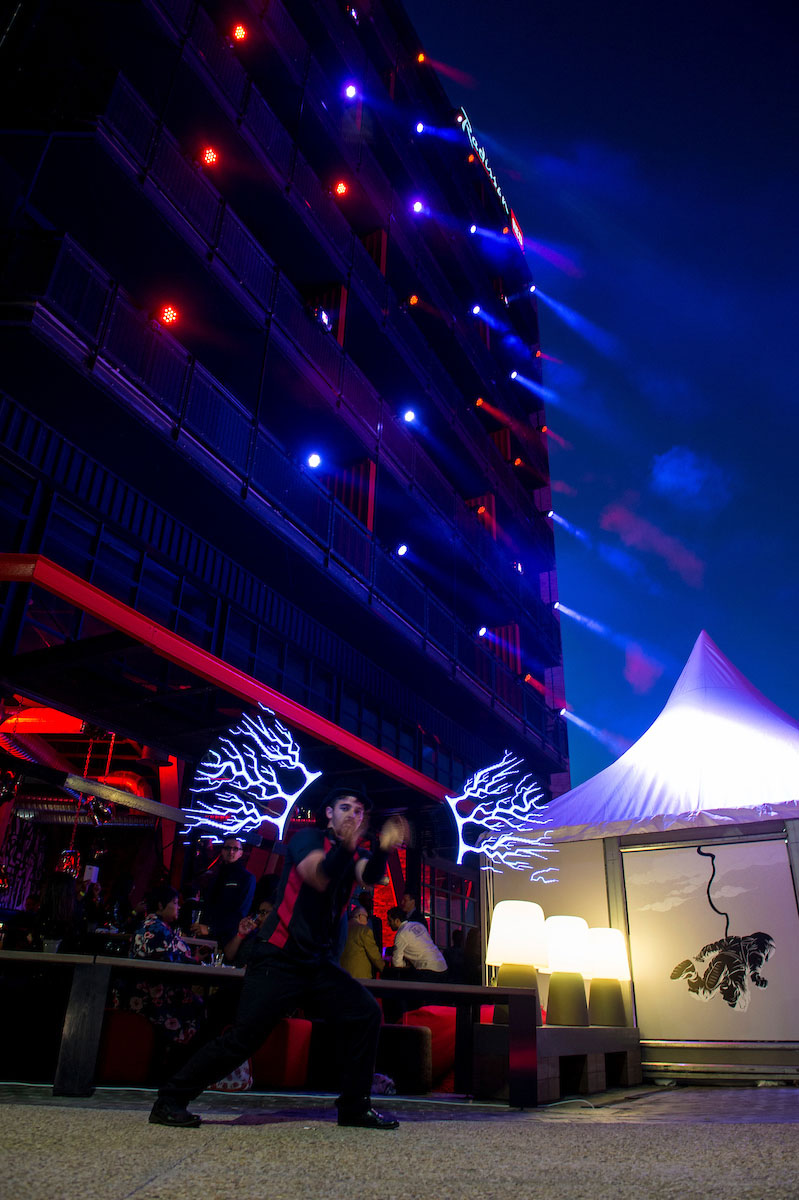 Además del acto de poi digital, los miembros ofrecen diversas formas de impresionante entretenimiento con fuego.