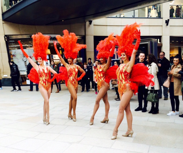 Para un espectáculo completo de baile de showgirls, estas bailarinas saben cómo impresionar con sus deslumbrantes rutinas y fabulosa coreografía que está garantizada para impresionar a cualquier audiencia. Nuestro acto de baile es ideal para eventos corporativos, fiestas temáticas y festivales: Virgin, Thomas Cook y Royal Armouries son solo algunos de los clientes satisfechos del pasado. Nuestras bailarinas profesionales pueden crear un espectáculo personalizado para adaptarse a tu evento y pueden proporcionar una variedad de otros artistas, incluyendo imitadores de celebridades, cantantes e incluso zancudos para una verdadera extravagancia al estilo de Las Vegas.