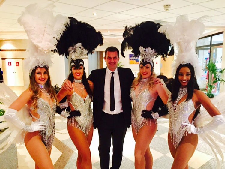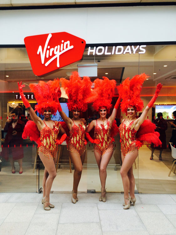 Nuestro espectáculo de baile de showgirls profesional y aclamado ha sido un éxito en innumerables eventos en todo el Reino Unido y nuestras brillantes bailarinas ofrecen una variedad de otros servicios, incluyendo una fabulosa recepción de bienvenida. Nuestro acto de showgirl ambulante también es perfecto para crear un ambiente de fiesta eléctrico, ya que nuestras seductoras damas desfilan por todo tu evento. Reserva a nuestras bailarinas showgirl para una actuación emocionante y elegante en tu evento.