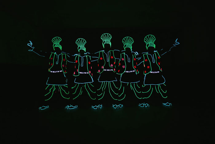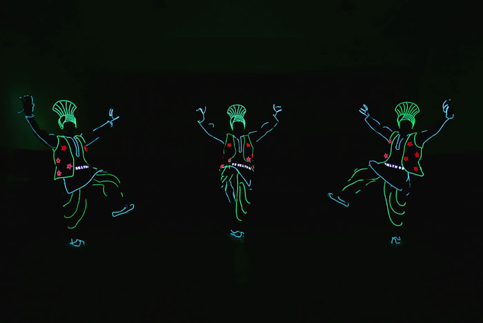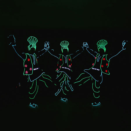 Con bailarines Tron vibrantes que visten trajes diseñados para parecerse a trajes tradicionales de Bhangra, este acto totalmente único combina la cultura india y la tecnología. Actuando con una variedad de canciones de Bhangra, estos talentosos bailarines LED están garantizados para energizar a cualquier audiencia con su espectáculo dinámico. Programados al ritmo de la música y con una variedad de luces de diferentes colores, los increíbles trajes de Bhangra también están acompañados de palos y tambores LED, que se utilizan para complementar las increíbles rutinas de los bailarines indios.