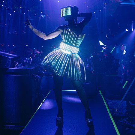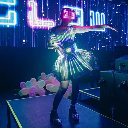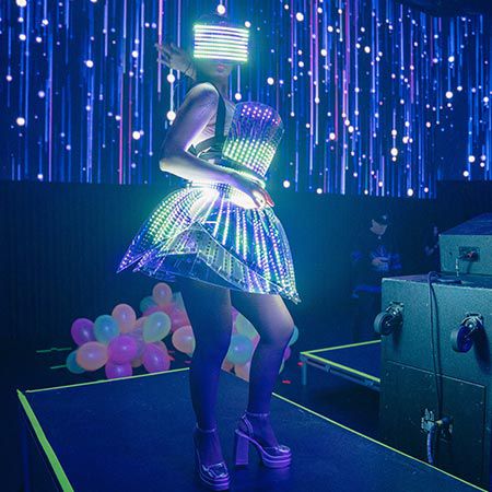 Ya sea que estén actuando de manera ambiental para animar a los invitados a la pista de baile o mezclándose con la multitud, nuestros bailarines LED siempre son un éxito.