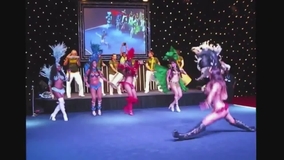Observa cómo los ojos de los invitados se mantienen fijos en los extravagantes trajes diseñados de nuestros bailarines, decorados con plumas gigantes, pedrería, lentejuelas y cristales listos para agitar, agitar, agitar.