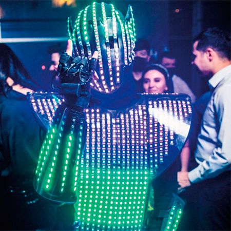 Estos Robots LED también pueden convertirse en anfitriones de bienvenida y están disponibles para acompañar a los invitados a la fiesta. ¡Sus increíbles trajes harán que sean difíciles de pasar por alto!
