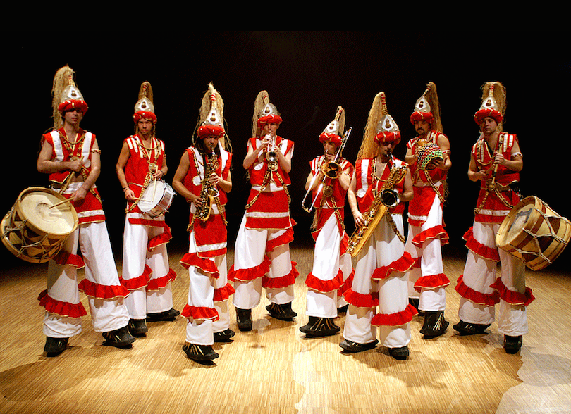 Banda brasileña tocando música tradicional brasileña: Maracatu