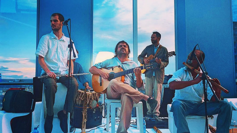 Esta banda de Chill Out de Barcelona es un homenaje a la fusión de culturas, ya que sus miembros son cinco músicos de cinco países diferentes: Chile, Brasil, España, Francia y Nepal. Esta fascinante mezcla crea un sonido único, combinando instrumentos tan diversos como la tabla india, el cajón flamenco, la guitarra española, el Hang Drum, el saxofón, la guitarra electroacústica o el Bansuri (una flauta de bambú de Nepal).