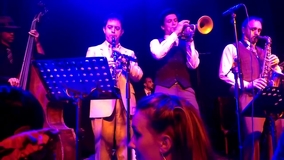 Reserve esta banda de jazz de los años 30 para una experiencia musical en vivo animada y bulliciosa que hará que el público baile en todas partes. Nuestra magnífica banda de jazz deslumbrará al público con su música rápida y pegajosa y su electrizante destreza musical en una actuación que los invitados no olvidarán pronto. Nuestra banda de swing ha recorrido todo el mundo y ha llevado su música alegre y festiva a festivales, clubes, espectáculos de baile, noches de variedades e incluso circos, y su sentido de diversión y ambiente de fiesta los sigue dondequiera que vayan.