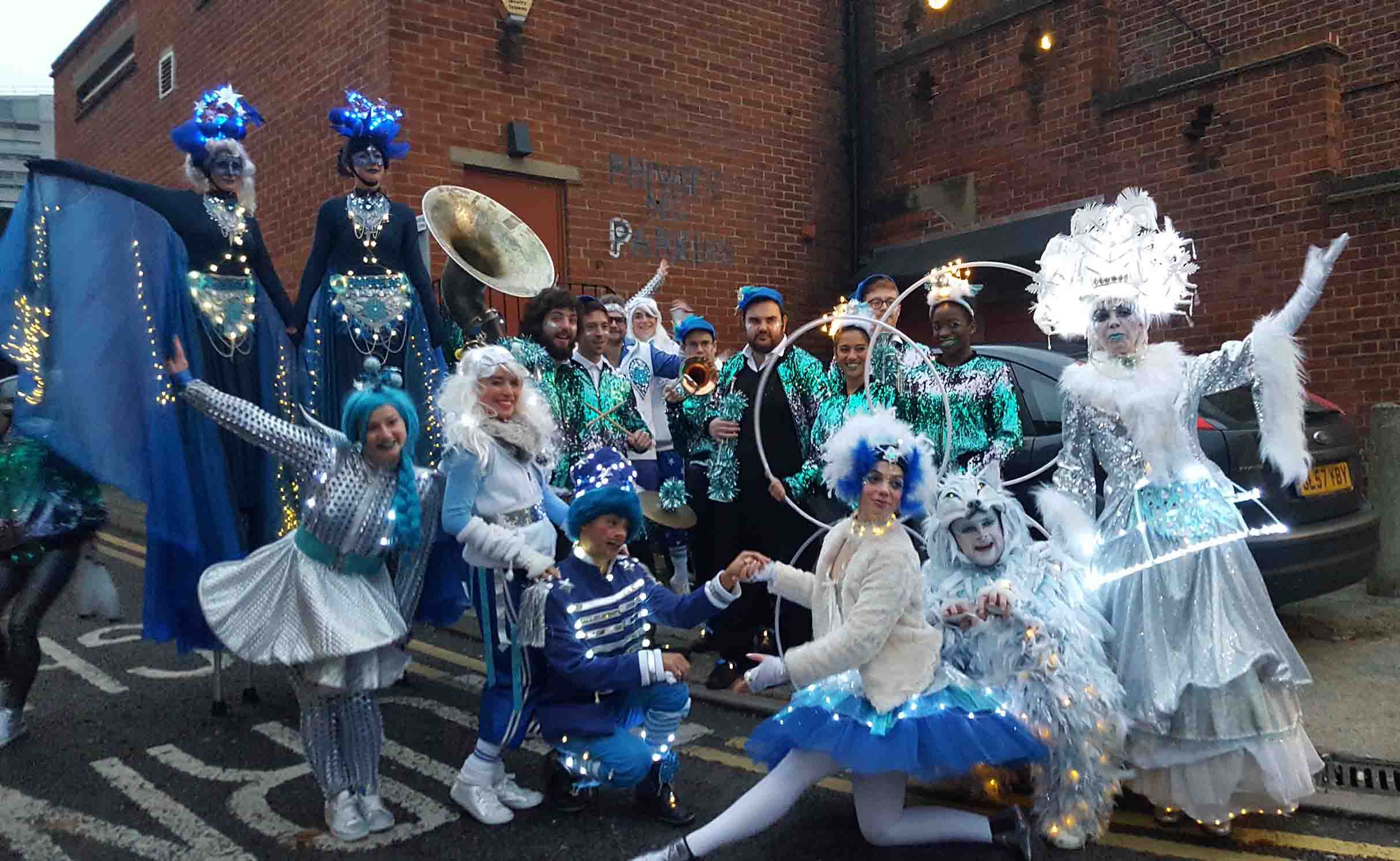 Profesionales y entusiastas, vienen completamente equipados para ofrecer tanto actuaciones interactivas deambulantes como espectáculos de escenario a gran escala.