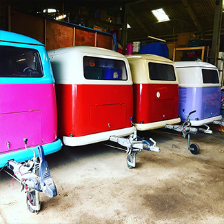 Impresionantes réplicas de remolques VW camper que se pueden utilizar como cabinas de DJ o como bares completamente funcionales.