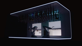 Crea un espacio sofisticado en tu evento colocando una barra con estos servidores de bebidas robóticos encima. La instalación completa también incluye pantallas LCD debajo de vidrio de espejo unidireccional que permite a las personas visualizar información en tiempo real sobre pedidos actuales, tiempo de espera y otras estadísticas.