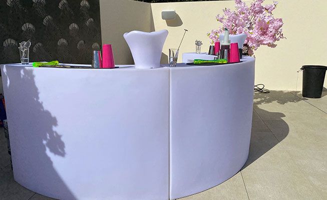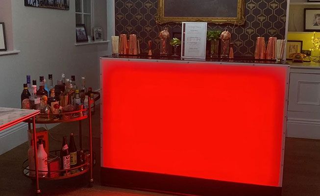 Ideal para bodas o eventos temáticos, nuestro equipo de bar puede ofrecer una variedad de opciones de barra, desde iluminadas, curvadas, de madera e incluso una caravana.