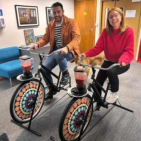 Nuestras bicicletas de smoothies interactivas están disponibles para eventos en todo el Reino Unido, incluidas fiestas temáticas y campañas de promoción en centros comerciales