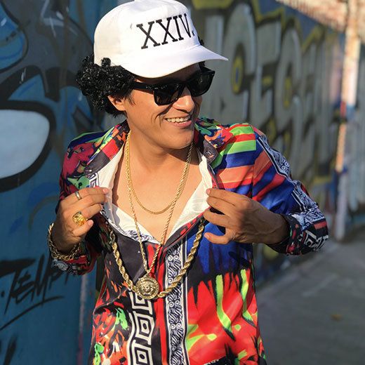 Habiendo viajado por los Estados Unidos interpretando su tributo a Bruno Mars, nuestro doble de famoso seguramente impresionará a tus invitados.