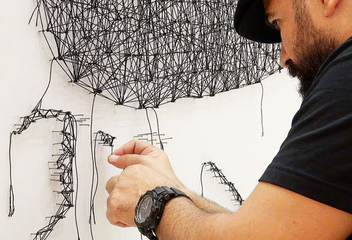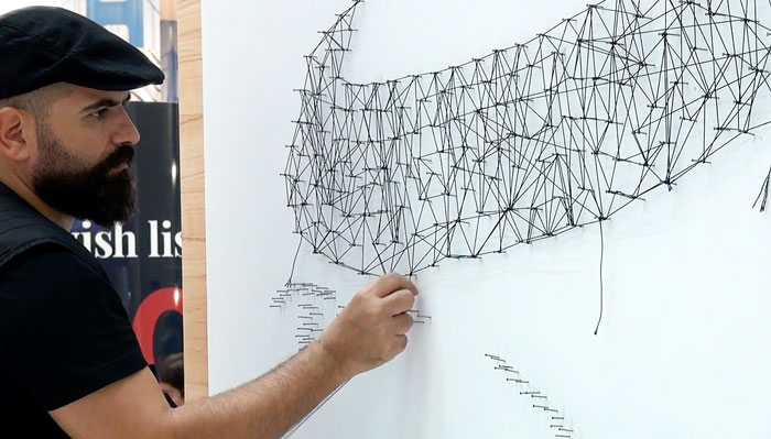 Utilizando un conjunto de clavos meticulosamente colocados en un lienzo en blanco, el String Artist Abu Dhabi entrelaza cada uno de los clavos con hilo. Un proceso muy similar a un dibujo de unir los puntos. El artista del evento en vivo envuelve más hilo en ciertas áreas para definir sombras o profundidad y la obra de arte cobra vida lentamente ante los ojos de tus invitados.