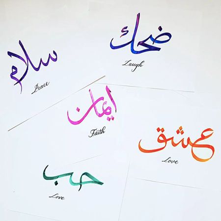 Nuestro talentoso artista se especializa en caligrafía árabe pero también puede crear diseños en inglés, utilizando una variedad de técnicas y materiales diferentes.
