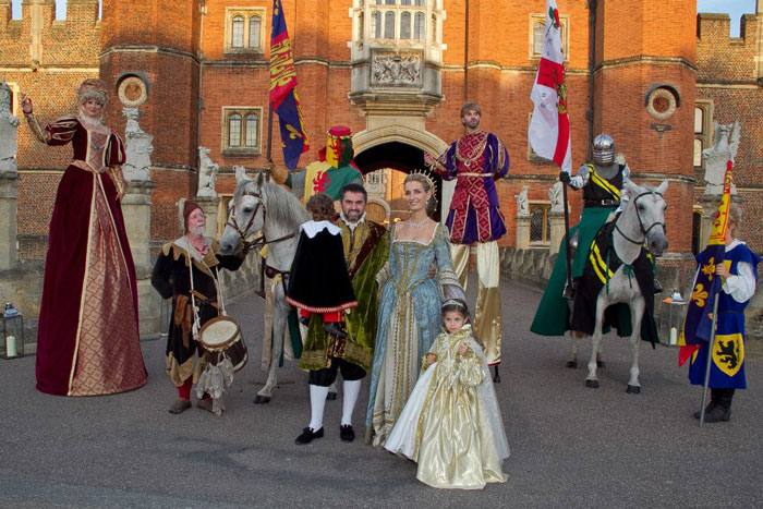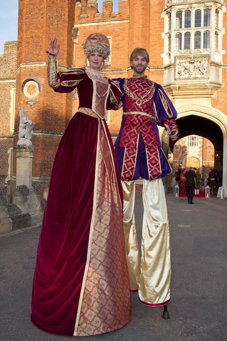 La pareja de caminantes zancudos temáticos de la época Tudor tiene su base en Brighton y está disponible para reservas en todo el Reino Unido y en el extranjero.