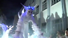 Su deslumbrante espectáculo en el escenario es una combinación de zancos con luces LED, actuaciones de fuego y trabajo aéreo.
