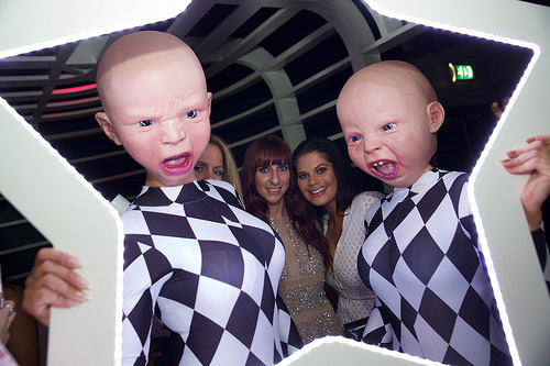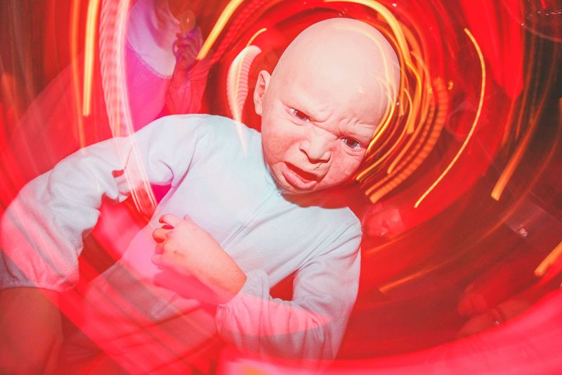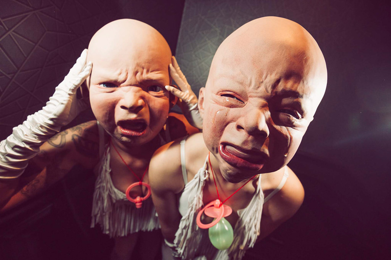 Para entretenimiento ambulante de la clase más oscura, este extraño acto itinerante sorprenderá y desconcertará a tus invitados. Nuestro inusual paseo es un par de máscaras de cabeza de bebé usadas por modelos, y está claro que no están felices. Los bebés de temática espeluznante están enojados y tristes, ¡y no tienen miedo de hacerlo saber a tus invitados! Como acto de mezcla e interacción, estos bebés no pueden evitar que la conversación en tu evento se propague como un incendio forestal.