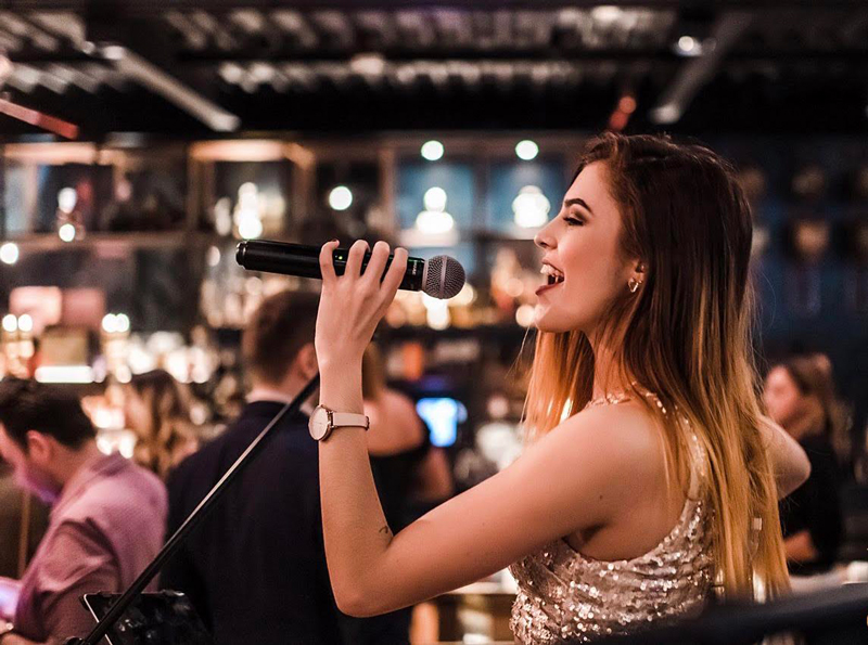 Una talentosa cantante femenina garantiza deleitar a los oyentes con su cautivadora voz, energía contagiosa y sonrisa eterna.