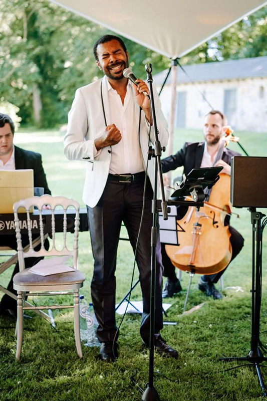 El cantante puede actuar acompañado de músicos en vivo. Elija entre diferentes formatos, incluyendo dúos de jazz, tríos y cuartetos.