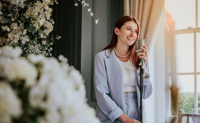 Como cantante profesional de bodas y eventos, esta vocalista vuelca su entusiasmo en crear momentos inolvidables a través de la música en directo