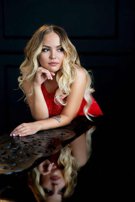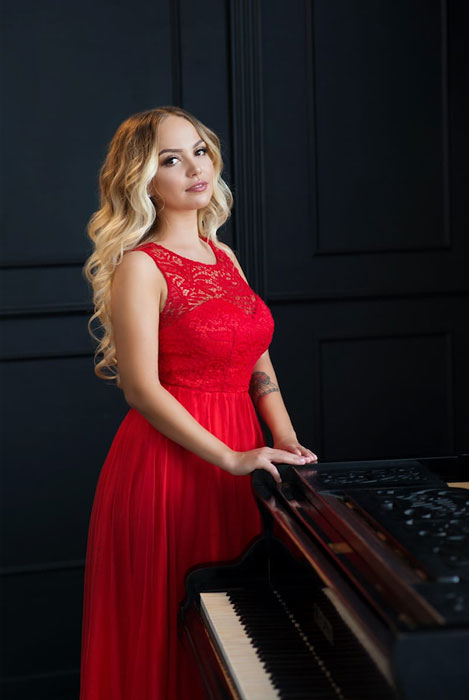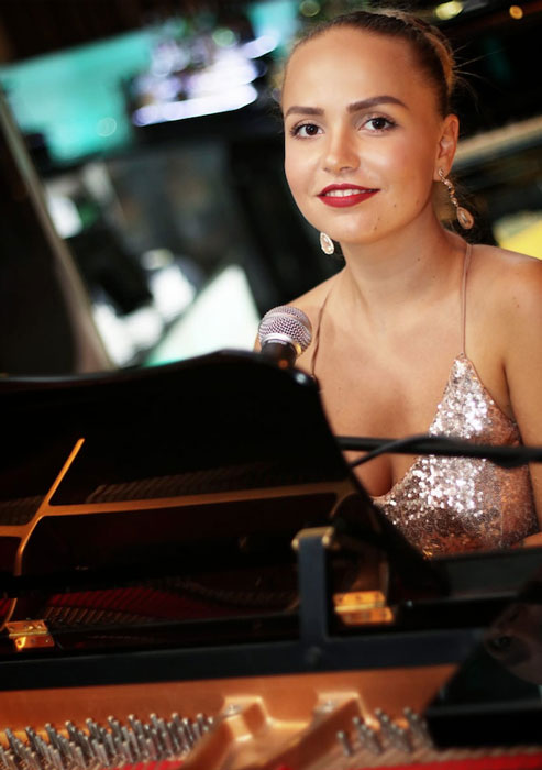 Proveniente de un sólido trasfondo musical, la pianista femenina tiene más de 15 años tocando el piano y comenzó a cantar cuando era apenas una niña pequeña. Originaria de Uzbekistán, nuestra cantante y pianista femenina ahora reside en Rusia y está disponible para eventos y residencias en todo el mundo.