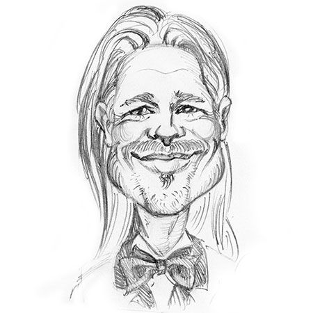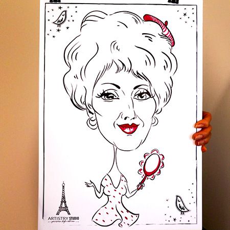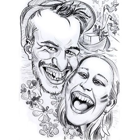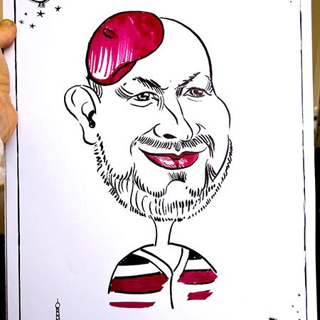 Nuestro caricaturista tradicional es rápido en el dibujo y puede crear bocetos humorísticos en blanco y negro de los invitados que asisten a su gran evento.