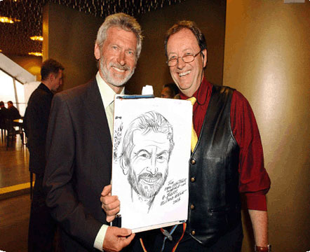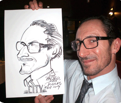 Disponible para mezclarse y relacionarse con los invitados o trabajar desde un caballete fijo, Andreas produce cada caricatura en solo 2 minutos. Con un ojo agudo para los detalles, ve algo especial en cada rostro, que rápidamente plasma en papel, combinando una increíble precisión con exageración para obtener un resultado final hilarante.