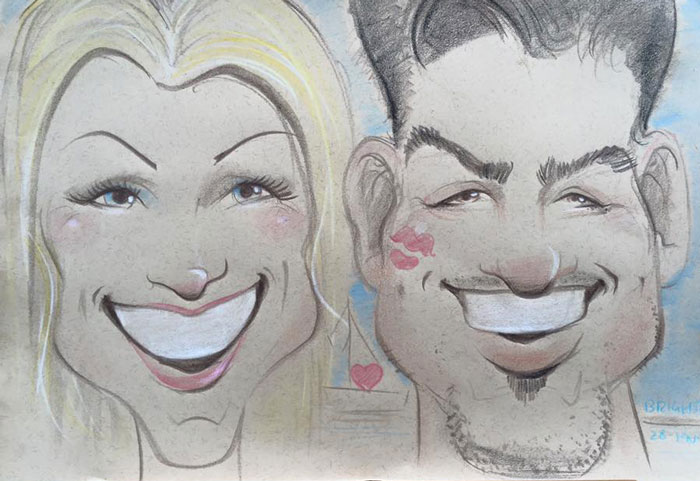 Nuestro brillante artista de caricaturas crea obras de arte sobresalientes e impresionantes que inmortalizarán su evento especial durante años. Manteniendo a los invitados comprometidos en conversación, nuestro maravilloso caricaturista ofrece solo una experiencia interactiva de alta calidad que seguramente tendrá un gran atractivo y entregará un sello de aprobación de "wow". Un acto de arte fantástico para cualquier ocasión especial, nuestro artista en vivo será el rompehielos perfecto para su evento especial, creando recuerdos inolvidables incorporados en impresionantes dibujos que generarán un tema de conversación instantáneo.
