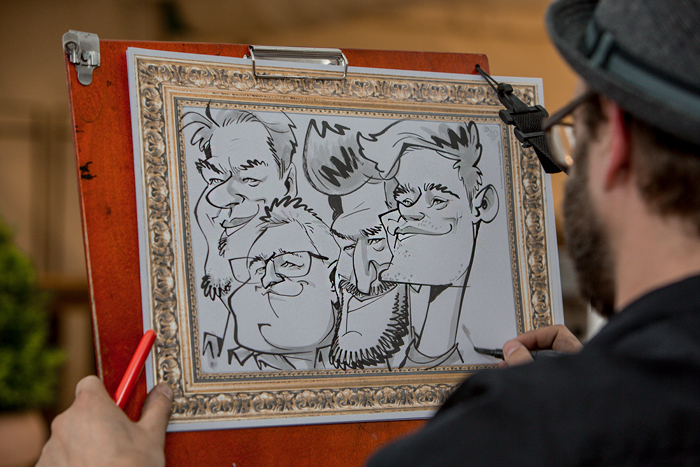 Nuestro Caricaturista en Vivo puede satisfacer a cualquier cliente, ya sea una boda o una función corporativa. Tiene un enfoque muy flexible y está dispuesto a hacer todo lo posible para obtener excelentes resultados. Ofrece una variedad de opciones que incluyen papel con marca, hojas de tamaño A3 o A4, así como impresiones en forma de postal para las caricaturas digitales.
