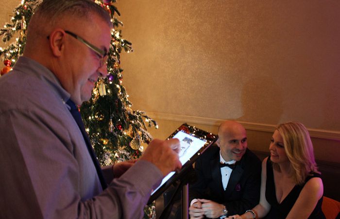 Nuestro caricaturista es la adición perfecta para eventos corporativos, bodas y ferias comerciales y nunca deja de atraer a la multitud.