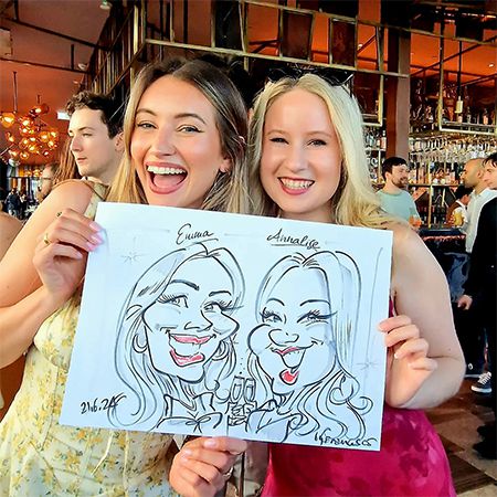 Nuestro caricaturista artístico puede crear dibujos detallados con un toque divertido, capturando el parecido de tus invitados en tan solo cinco minutos.