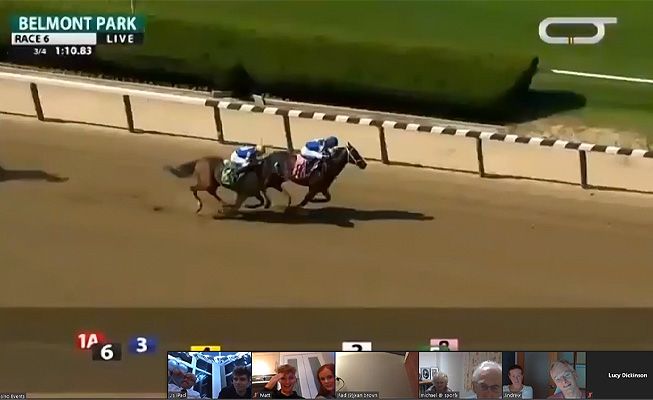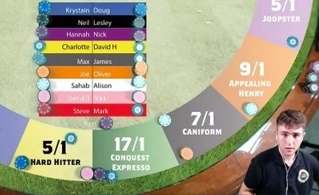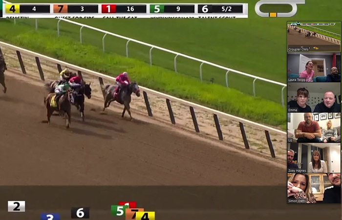 Esta es una experiencia interactiva transmitida en vivo y dirigida por nuestros anfitriones profesionales e incluye imágenes pregrabadas de carreras de caballos reales. ¡En la noche, nuestro anfitrión enseñará a los invitados cómo apostar en las carreras antes de que comience la diversión real! A lo largo del evento, nuestro anfitrión estará llevando un registro de qué participante está ganando más fichas apostando en las carreras para revelarlo al final de la noche.