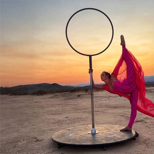 El aro de piruleta ofrece flexibilidad tanto como un acto en solitario cautivador como una actuación dinámica en dúo, aportando versatilidad y arte a cualquier evento.