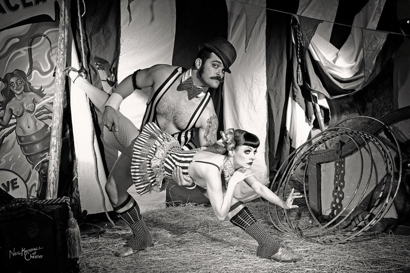 Un talentoso artista que puede realizar con aros de hula, comer fuego, bailar burlesque, danzas de plumas, actuaciones con cintas, caminar en zancos y más.