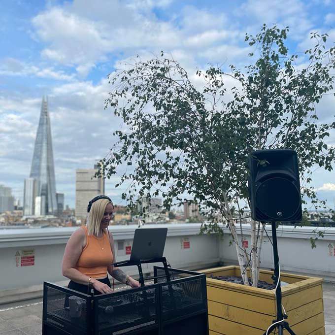 " (Ella) fue una brillante adición a la fiesta de verano de mi cliente... puntual, confiable y profesional y tocó toda la música adecuada para poner a mis invitados en el estado de ánimo perfecto para el evento. (Ella) se adaptó rápidamente al cambio de clima y continuó como si nada hubiera pasado. Espero con ansias trabajar con ella nuevamente y definitivamente la recomendaría para cualquier necesidad de DJ que puedas tener. "