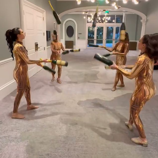 Observa cómo estos hábiles malabaristas sorprenden a los invitados, lanzando y equilibrando botellas de champán con precisión, estilo y contagiosa energía festiva.