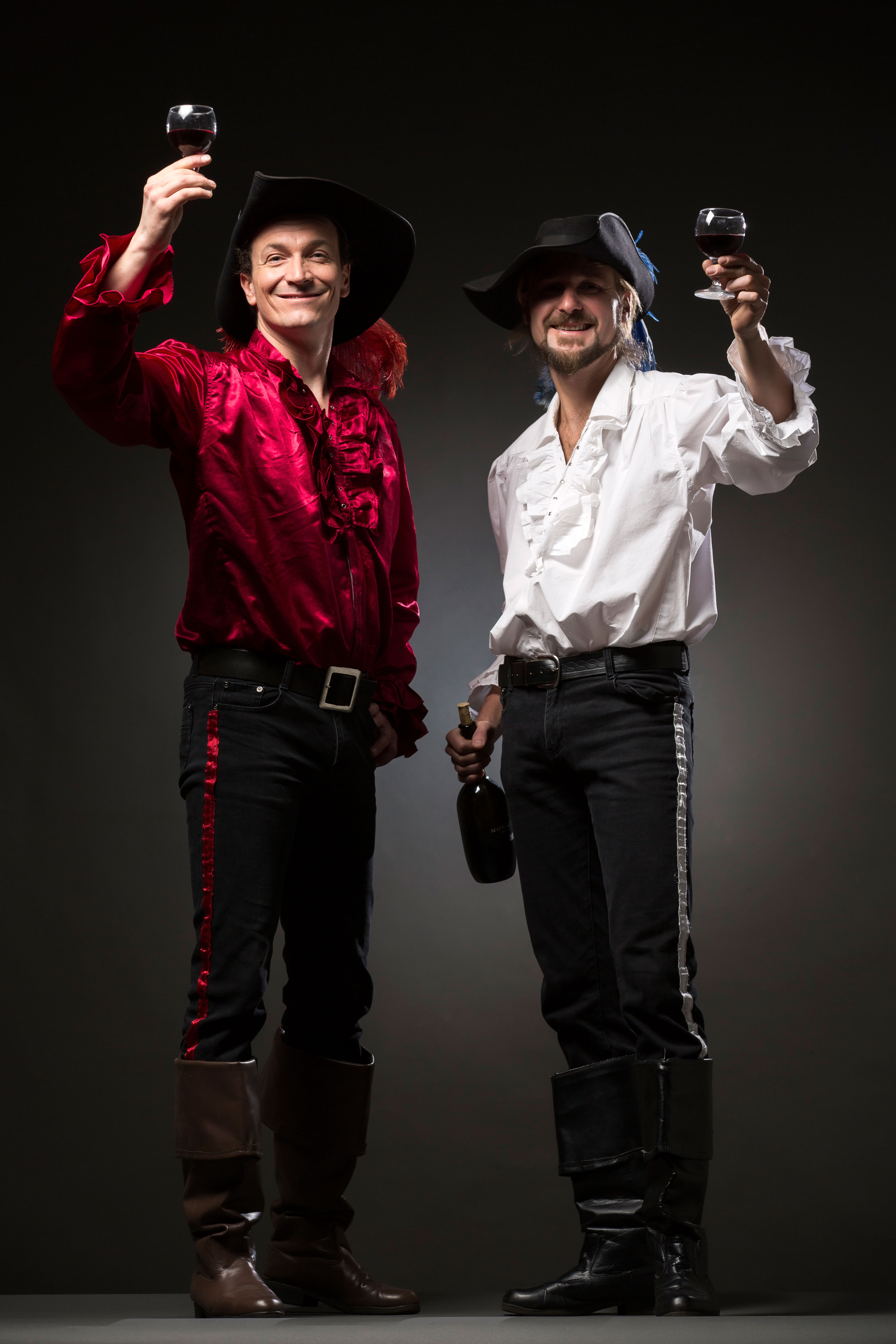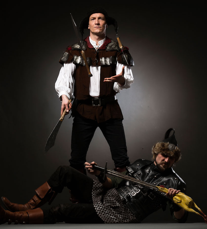 Con su innovación y habilidad, este dúo ha llevado la comedia, el malabarismo y la acrobacia en una dirección completamente nueva. Sus auténticos y detallados trajes y accesorios, coreografías precisas y sketches cómicos desternillantes se combinan para crear un espectáculo de actuaciones temáticas como nunca antes habías visto. Cada una de sus increíbles actuaciones puede adaptarse a tus necesidades exactas, ya sea que estés buscando piratas audaces o mosqueteros elegantes, un sketch temático olímpico, un espectáculo de fuego, un espectáculo de LED o cualquier cosa sobre zancos, ¡ellos pueden ofrecerlo!
