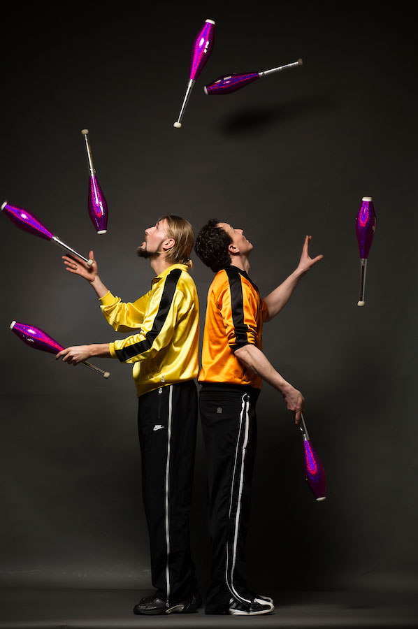 Siempre aprendiendo rutinas y trucos nuevos y emocionantes, este dúo cómico son las superestrellas del malabarismo. Les gusta ser todo menos ordinarios, malabareando con cuchillos, objetos domésticos, herramientas, maniquíes, palos de LED, bastones de fuego y más, mientras ofrecen una actuación teatral dramática que hará que el público se desternille de risa y llore de la risa. No solo malabarean con objetos inusuales, sino que llevan sus habilidades al extremo, malabareando en monociclos ordinarios y de 3 metros de altura, y equilibrándose en Rola Bolas de varios pisos.