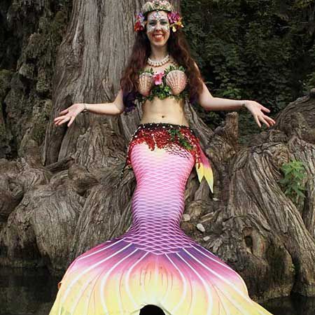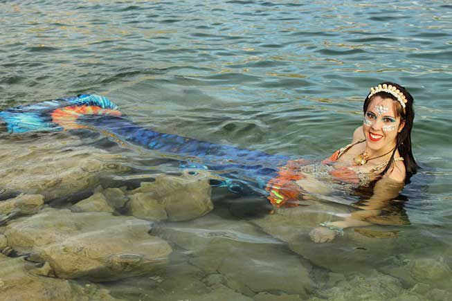 Nuestra sirena puede proporcionar ambiente al nadar en la piscina de su lugar, interactuar con los invitados y posar para oportunidades de fotos.