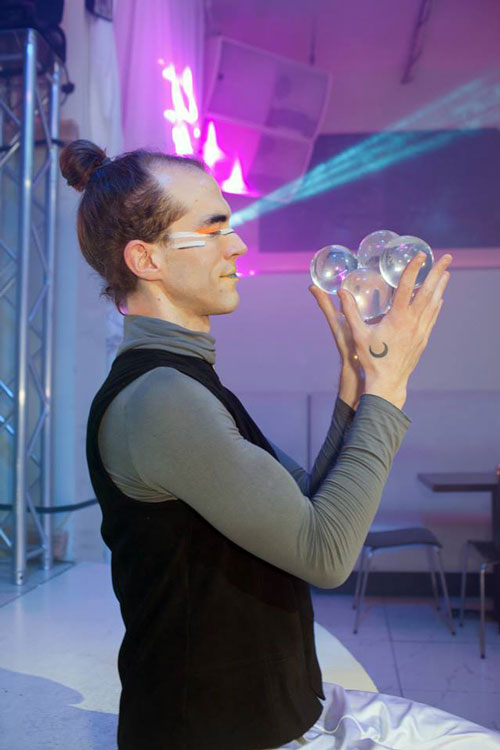 Utilizando bolas de cristal para crear una atmósfera idílica, nuestro malabarista de contacto es perfecto para noches sofisticadas, bodas, eventos corporativos, festivales y cualquier ocasión que desee un entretenimiento fascinante y sorprendente de ver.